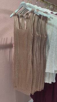Meet the dress that guarantees all eyes on you. The Saskia Mini Dress is a champagne-shimmer dream crafted for holiday parties, New Year’s Eve, and every glamorous night out. Designed with a body-skimming silhouette and all-over micro-crystal detailing, she sparkles with every move you make.
